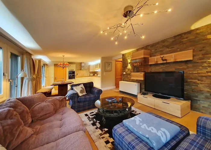 Αυτό το διαμέρισμα 110 μ^2 απέχει 75 χλμ. από το αεροδρόμιο Σιόν. Το κατάλυμα παρέχει σχολή σκι και χώρο αποθήκευσης σκι.